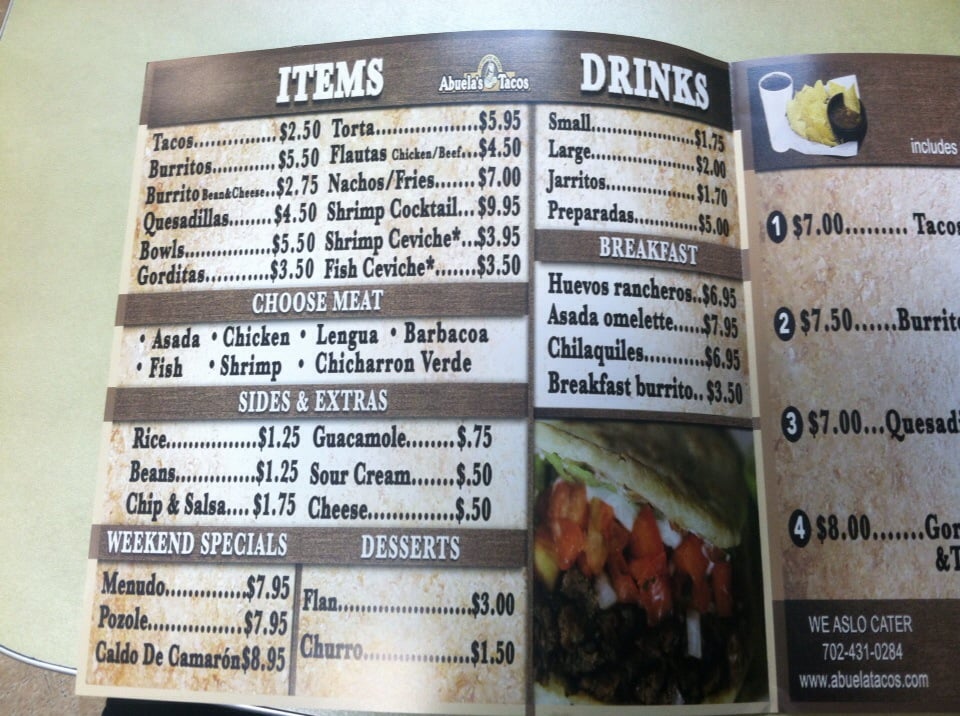 Abuela’s Tacos, located in Las Vegas, offers a variety of authentic Mexican dishes. With a casual ambiance and quick service for takeout orders, this spot has become a favorite for many customers. The menu showcases favorites like al pastor, fish, and asada tacos, as well as flavorful tortas and nachos. The food is praised for its freshness and the right balance of seasonings. Customers have highlighted the friendly staff, affordable prices, and the vibrant atmosphere. While some dishes may have minor drawbacks, overall, Abuela’s Tacos delivers tasty and satisfying meals. Be sure to try the fish and shrimp tacos, as well as the flaming hot fries for a filling and delicious experience. With excellent service and a genuine feel, this taco shop stands out for its quality ingredients and flavorful salsas.